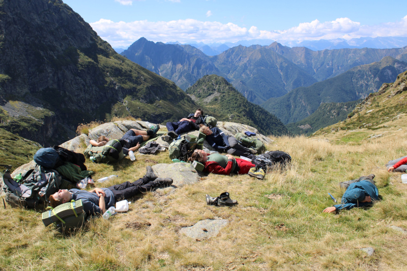 In diesem Fall trugen uns die Füße, wenn auch zeitweise schweren Trittes, einmal mitten durch das Val Grande. Mit Sack und Pack bewanderten sechs mutige Jugendliche, begleitet von einem Erlebnis-, einem Wildnis- und einer Heilpädagogin für eine Woche die abgeschiedene Wildnis der norditalienischen Alpen. Abseits der Zivilisation, allerdings in starker Gemeinschaft, konfrontiert nur mit sich selbst und der Natur, erlebten sie hier unvergessliche Erfahrungen. Sie bewältigten unzählige Höhenmeter, genossen traumhafte Aussichten und sammelten nachhaltige Erinnerung. Lerninhalte waren u.a. der Umgang mit Karte und Kompass, Wetter- und Naturkunde, ausgewogene Ernährung, das Wahrnehmen eigener Stärken und Grenzen und das soziale Miteinander in intensivem Setting. Auch wenn der Weg nicht immer leicht war, der Rucksack stets schwer, die Füße zum Teil schmerzten und die Nächte manchmal kurz waren – durch Gemeinschaft, Biss, Durchhaltevermögen, viel Humor und Euphorie meisterten die neun Gefährten dieses herausfordernde Abenteuer.